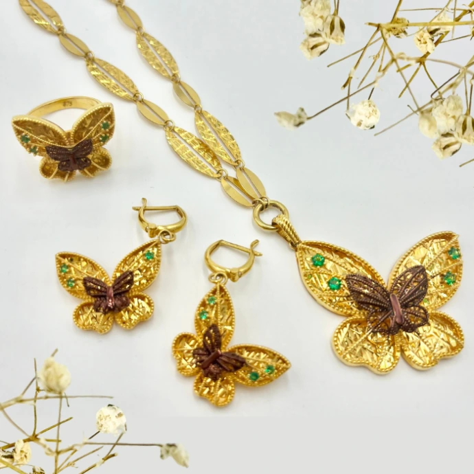 كل قطعة تُصاغ بأيدي خبراء مهرة من أمهر صاغة الذهب في حلب، باستخدام أجود أنواع الذهب وبأعلى معايير الدقة والحرفية.